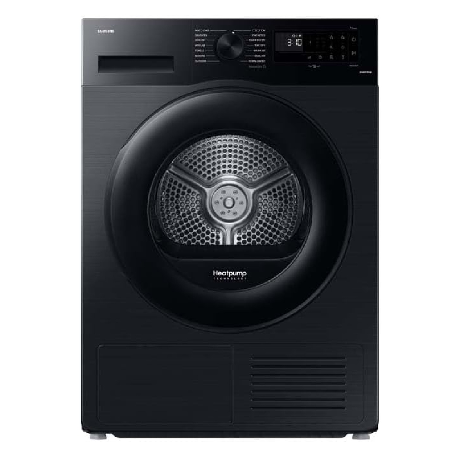 - What’s in the box: Samsung Series 5 Dryer with OptimalDry and SmartThings, Heat Pump Tumble Dryer, Freestanding, Dimensions (L x W H): 600 x 600 x 850 mm, Load Capacity: 8kg, Colour: Black, Art. No.: DV80CGC0A0ABEU